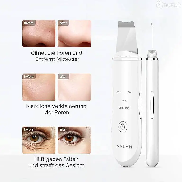 Der Ultraschall Gesichtsreiniger Testsieger für ein sanftes und schmerzfreies Gesichtspeeling, Porenreinigung, Face-Lifting und Behandlung von Narben, Akne und Falten.