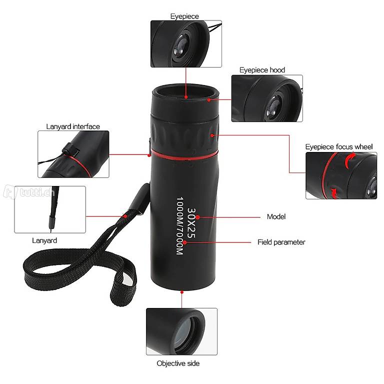 Kleines, preiswertes Monokular Fernrohr. Dieses kleine Fernrohr ist wasserdicht und bietet einen 10-fachen Zoom mit einem Sichtfeld von 1000m/7000m. Ein ideales Fernrohr für die