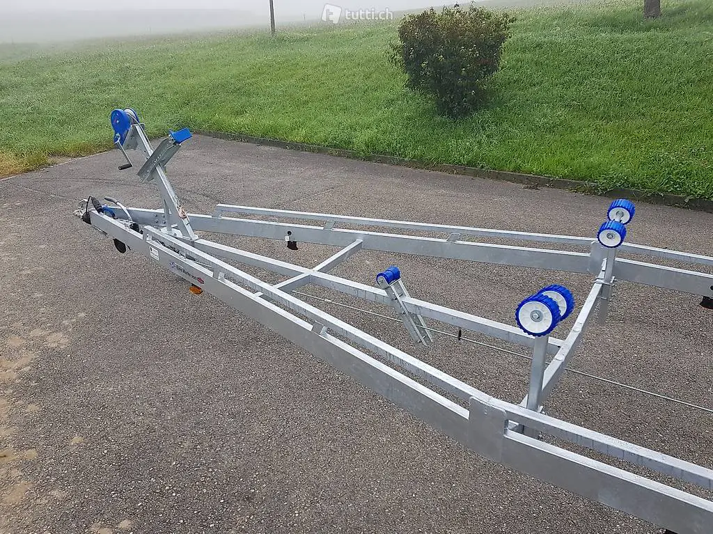Transportanhänger für Boote. Die Basis bildet ein starkes und stabiles geschweisstes Fahrgestell.