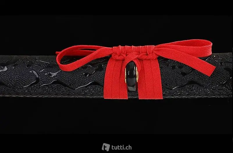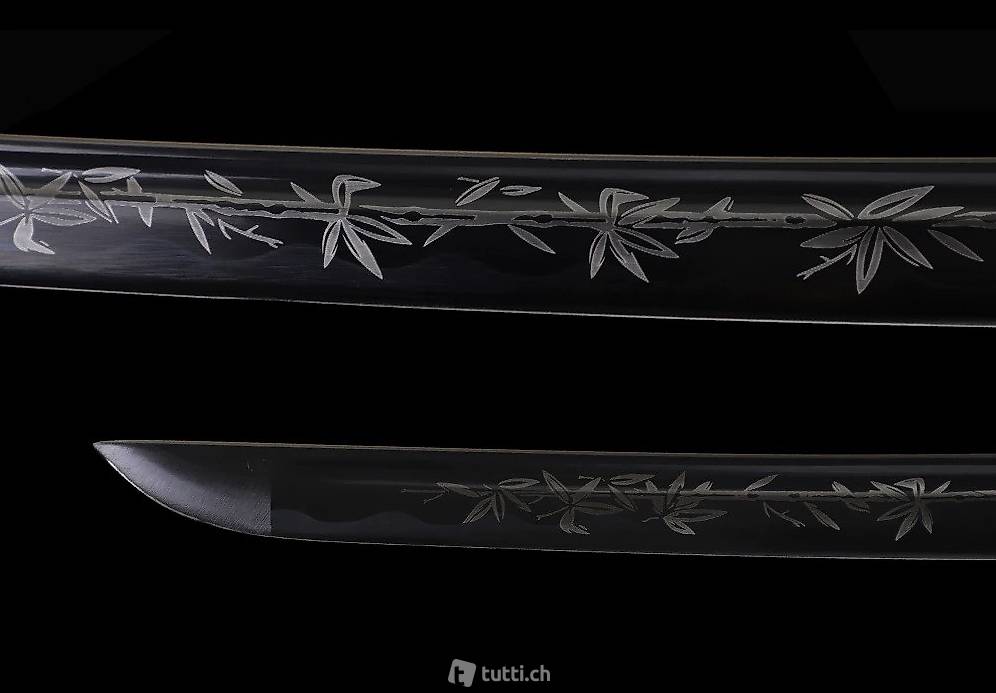 Der gehärtete Karbonstahl (1045) würde es sogar erlauben "Tatami-Omote" Matten zu schneiden, sollte aber wegen der prachtvollen Gravur und schwarzen Klingen-Legierung nicht im japanischen Bambus Schnitt-Sport eingesetzt werden.