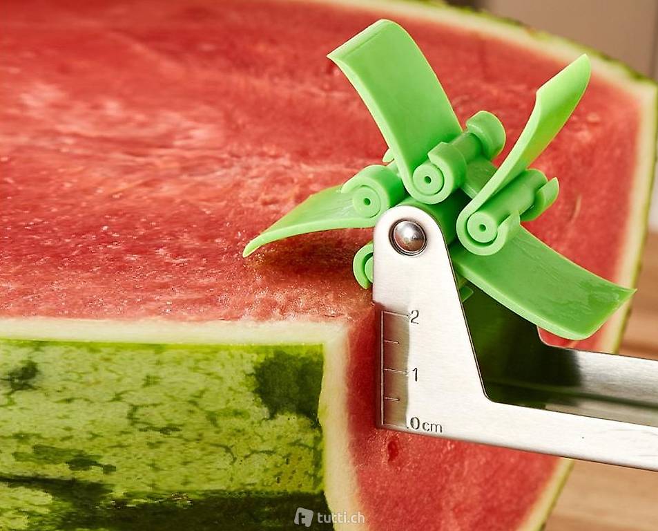 Schneiden Sie innert kürzester Zeit prachtvolle und symmetrische Melonen-Würfel, für ein leckeres Dessert oder ein beeindruckendes Buffet. Die Bedienung ist kinderleicht und der Melonen Würfelschneider "Windmühle-Obst" liegt sehr bequem in der Hand. Der Würfelschneider besteht aus rostfreiem Edelstahl und widerstandsfähigem Kunststoff, für einen langlebigen Einsatz in Ihrer Küche.