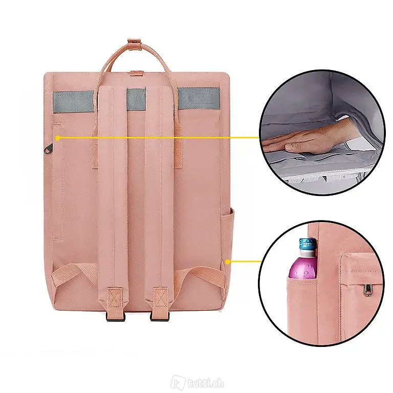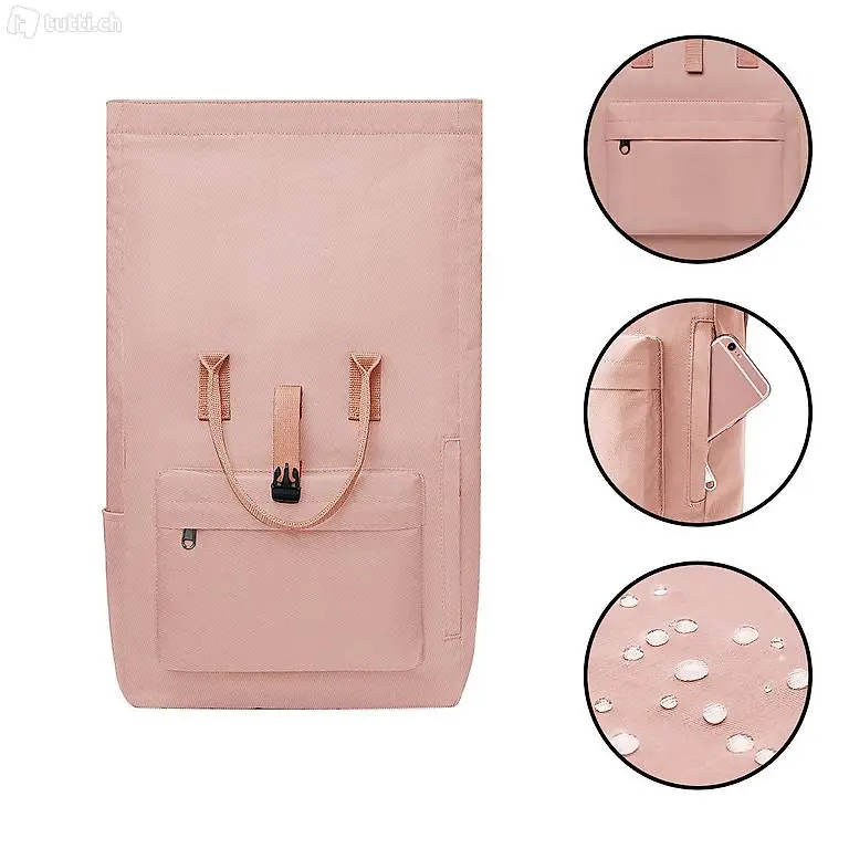 Das Design des Roll-Top Damenrucksack mit Doppelgriff widerspiegelt den Charme von Modernität und Innovation wider. Durch das verstellbare Oberteil mit Roll-Top Verschluss bietet dieser Tagesrucksack eine flexible und einzigartige Kapazität.