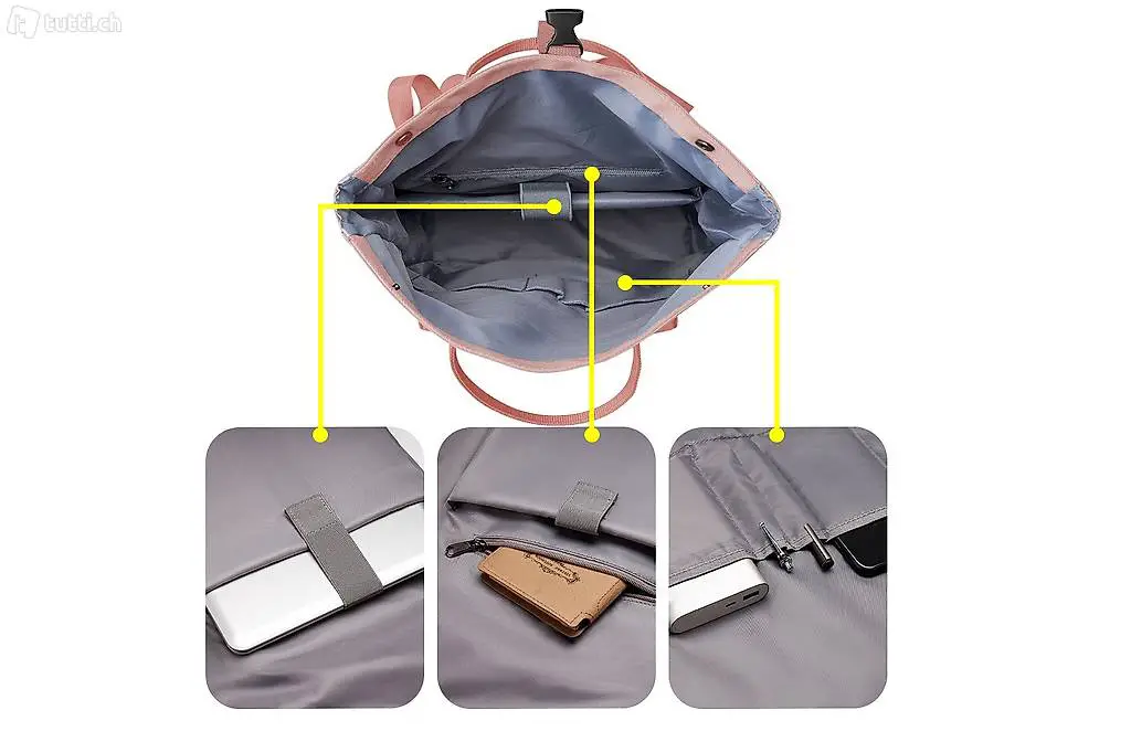 Tasche, oder mit den Schultergurten als Rucksack verwendet werden.