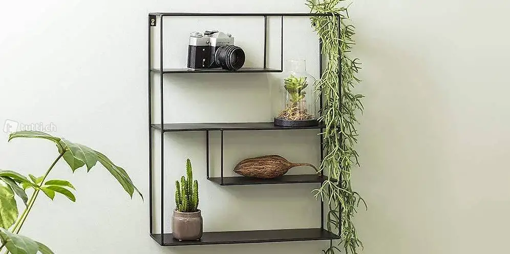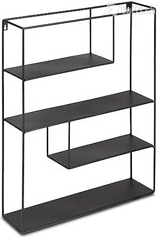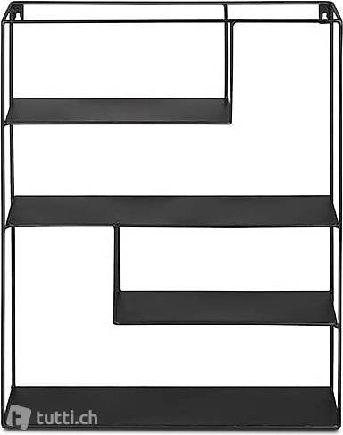 Weitere Informationen über das moderne Wandregal: Masse: 55 x 45 x 11 cm (L x B x T) ; 4 Ablageflächen; Material: Metall; Farbe: Schwarz.