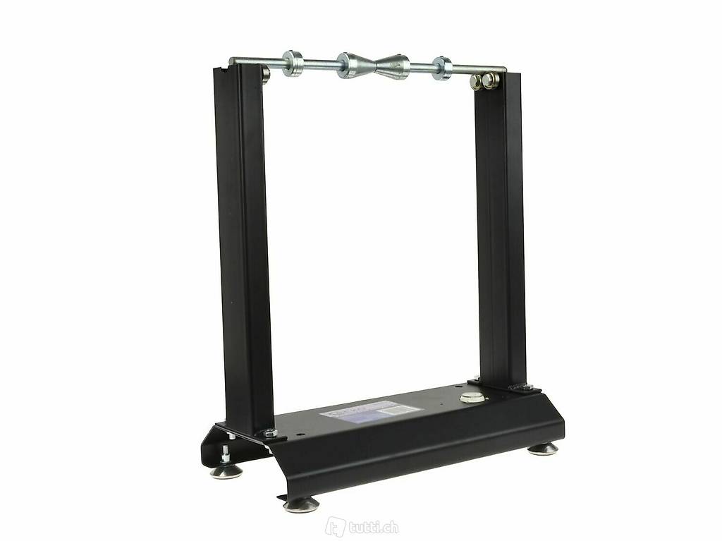 Auswuchtmaschine zum statischen Auswuchten von Motorradrädern mit einem Durchmesser von 10 bis 28 Zoll. Ausgestattet mit zwei Kegeln und einer Spindel für präzises und einfaches Auswuchten der Räder.