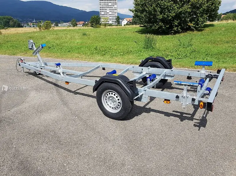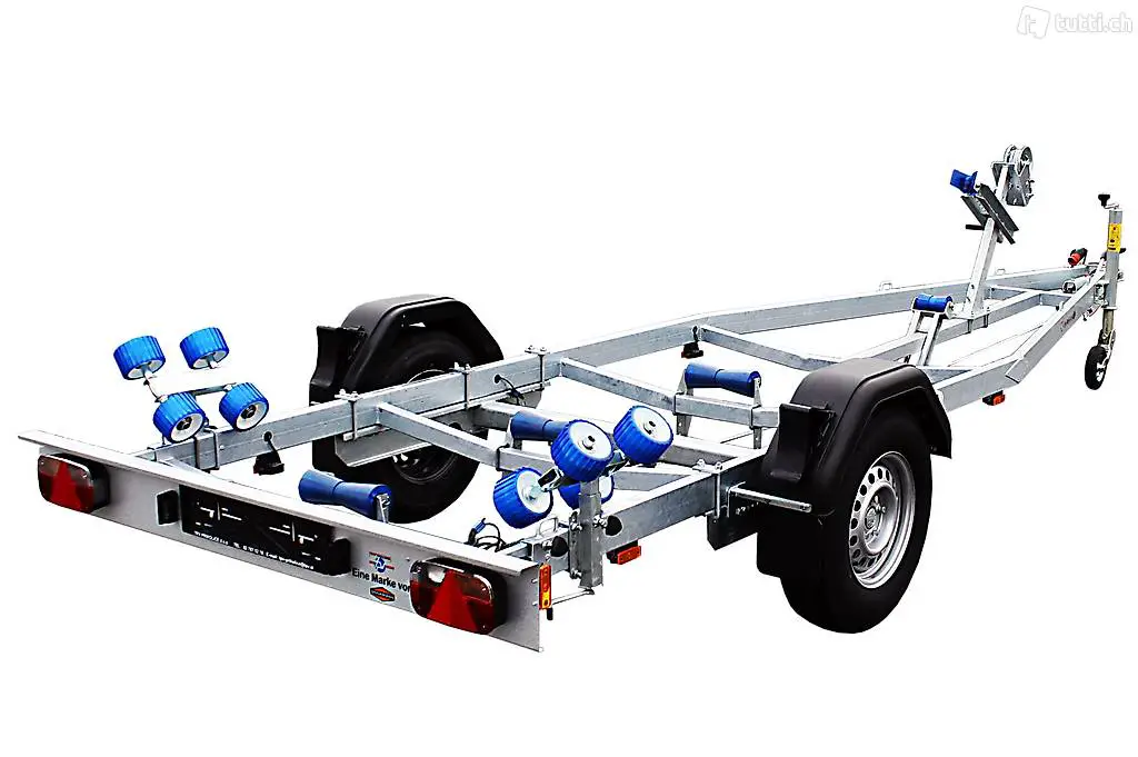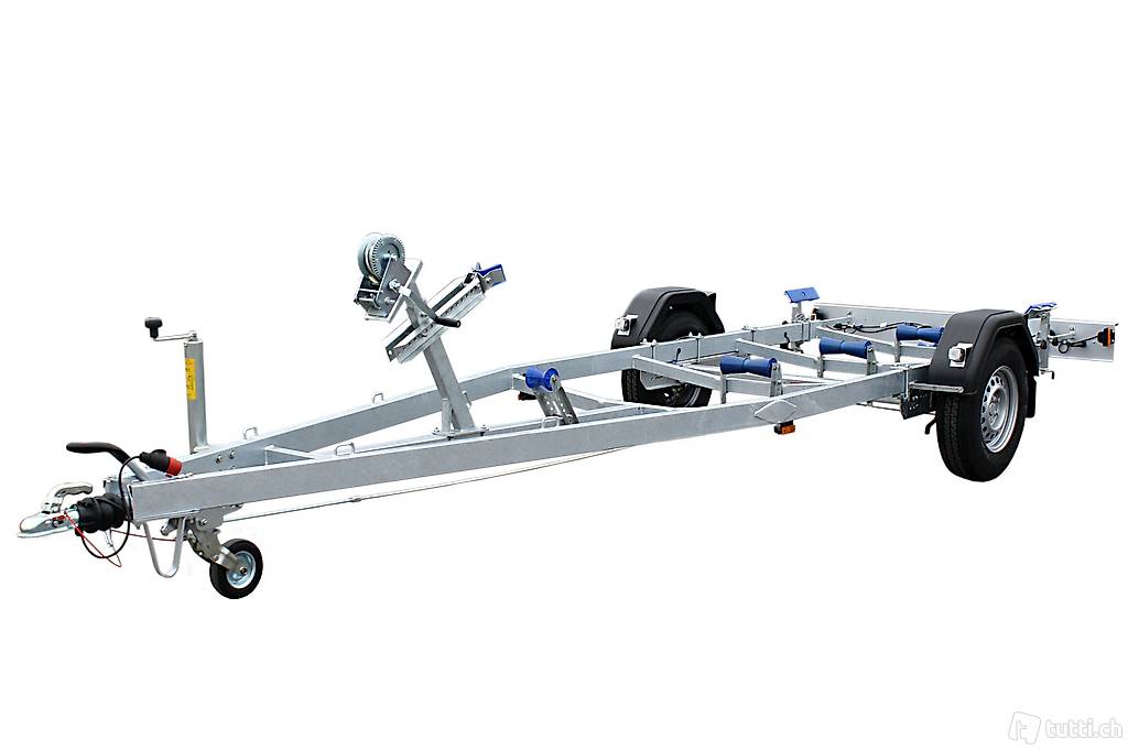 Transportanhänger für Boote. Wasserdichte Radlager. Die Basis bildet ein starkes und stabiles geschweisstes Fahrgestell.