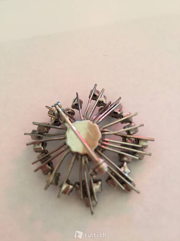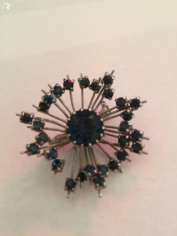 Vintagebrosche Silberfarbenes Gerüst mit blauen Steinen