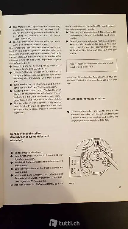 Autoreparaturbuch in Deutsch, mit Mass- und Einstelltabellen.