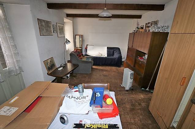 Im Erdgeschoss befinden sich zwei grosse Räume, ehemalige Ladengeschäfte. Das ganze Haus muss erneuert werden.