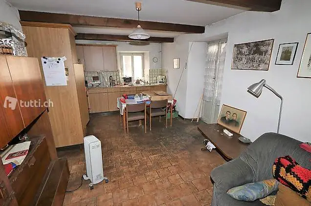 La struttura della casa è ancora in ordine. L'interno è da fare a nuovo. Si può anche ristrutturare la stalle e fare un abitazione. La casa ha tre piani. Nel piano terra si trovano due negozi e spazi vuoti. Nel primo e secondo piano sono appartamenti di 3 ½ locali. Sotto tetto sono vani ad uso ripostiglio. Sotto terra si trova una cantina.
