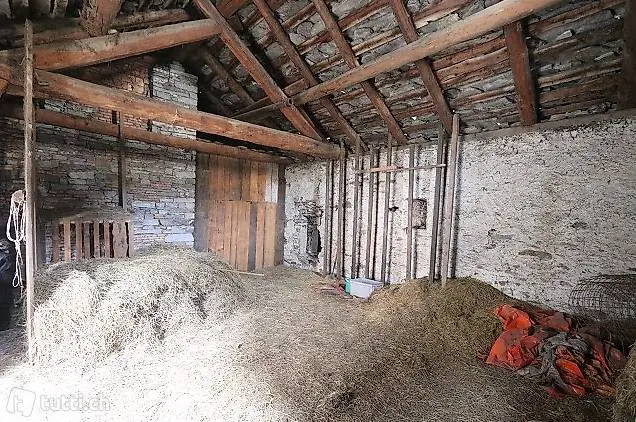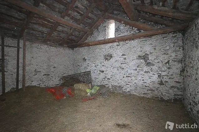 Im Untergeschoss befindet sich ein kleiner Keller und im Obergeschoss ein grosser, hoher und offener Estrich mit schönem Ausblick. Das Rustico muss vollständig neu ausgebaut werden.