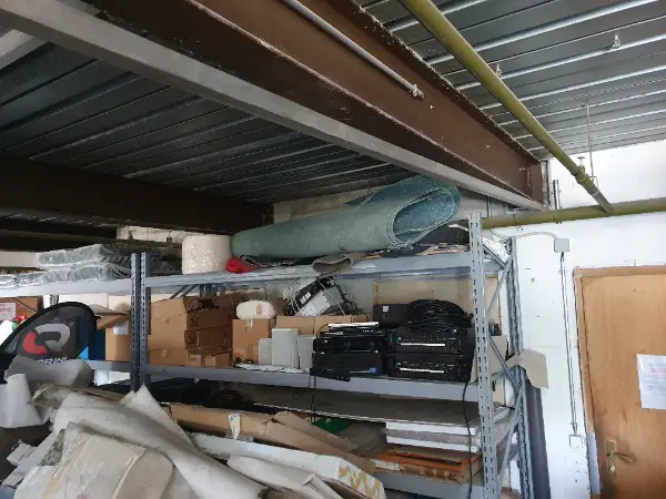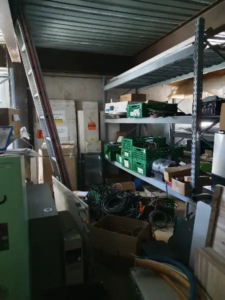 Impianti audio professionali: amplificatori, casse musicali, lettore CD, mixer, cavi elettrici di vario genere, articoli e attrezzi fitness, asciugacapelli, saune, cabina e componenti per bagno turco, e accessori per saune, armadietti, mobili, vetrinette, mobili antichi, plafoniere neon, tubi neon, ventilatori e materiale per impianti di ventilazione, pavimento laminato (nuovo) , attaccapanni e mensole inox per strutture pubbliche (scuole, asili, palestre, ecc.) , un armadio antincendio con lancia e estintore, materiale decorativo, eccetera.