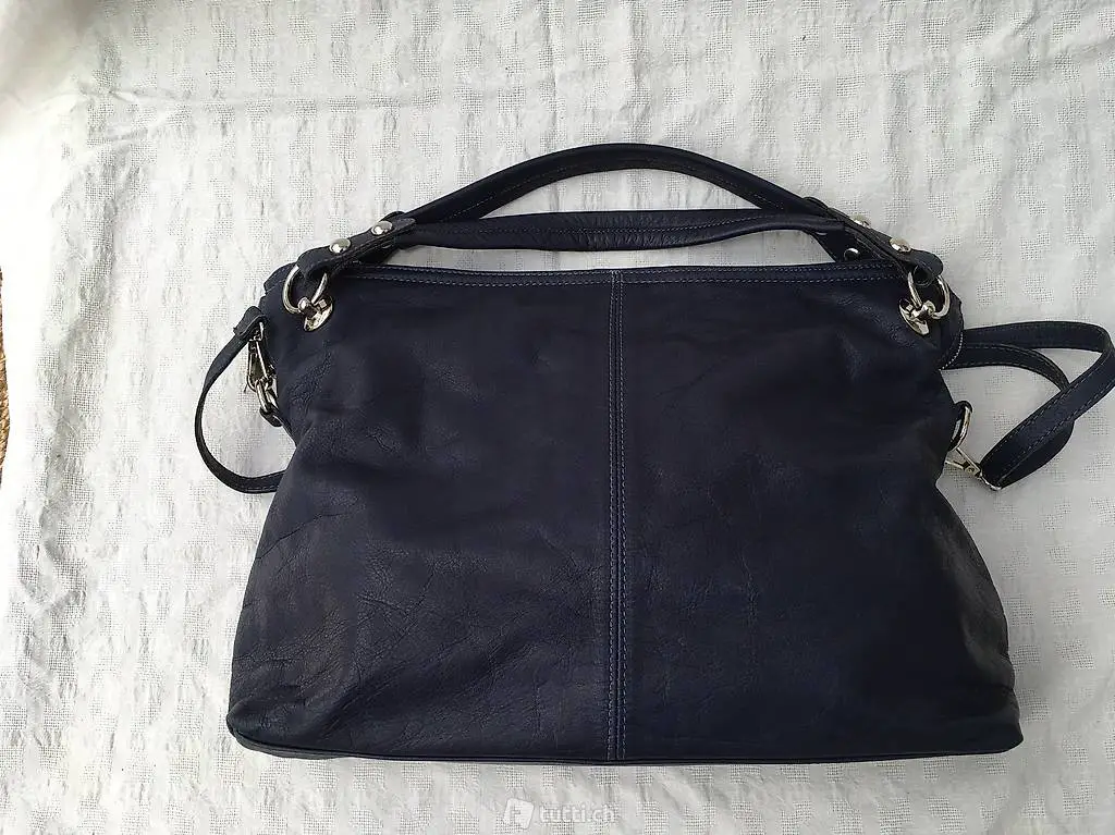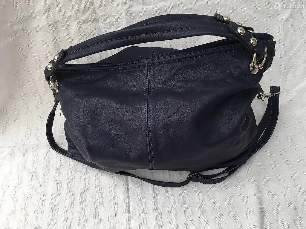 Hand-/Schultertasche, Leder, Dunkelblau, neu