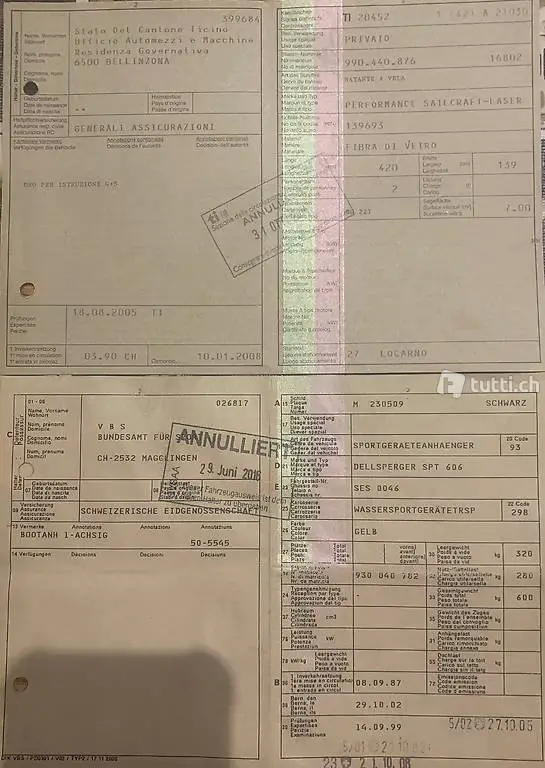 Vendo barca a vela completa marca Performance Sailcraft-Laser +rimorchio porta barche e canoe marca Dellsperger usati come da foto e con documenti. Non collaudati e senza garanzie