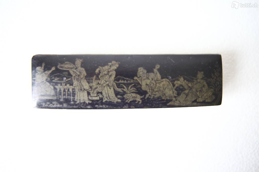 Mit originaler chines. Gravur auf dem Deckel in gold.