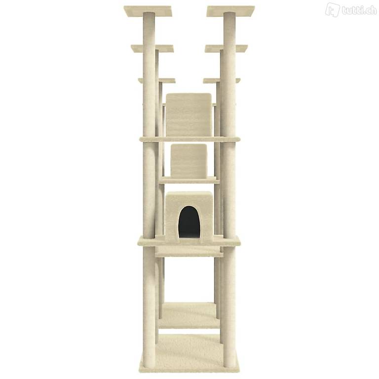 Dieser Kratzbaum ist der perfekte Rückzugsort für Ihre Katzen zum Kratzen, Klettern, Sitzen, Verstecken und Ausruhen. Er gibt Ihren Katzen die Möglichkeit, sich zu strecken und zu bewegen, besonders in den kalten Wintermonaten, wenn sie im Haus sind. Sisal-Pfosten: Die widerstandsfähigen und starken natürlichen Sisalpfosten sind perfekt für Ihre geliebten Katzen, um ihren Kratzinstinkt zu befriedigen und zu verhindern, dass sie an Ihren Möbeln kratzen.Vielfältige Verwendung: Die Kleinen werden sich freuen, wenn sie sich gegenseitig hinterherjagen, während sie in diesem lustigen Spielcenter auf und ab hüpfen. Wenn sie genug gespielt haben, werden Ihre kleinen Freunde es lieben, sich auf den oberen Plattformen auszuruhen, wo sie eine bessere Aussicht haben. Komfortables Haus: Das Haus ermöglicht es Ihrer
