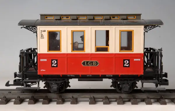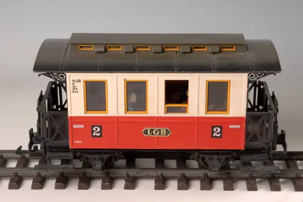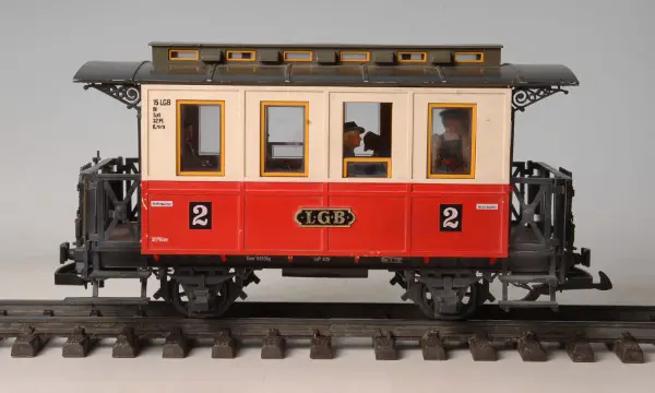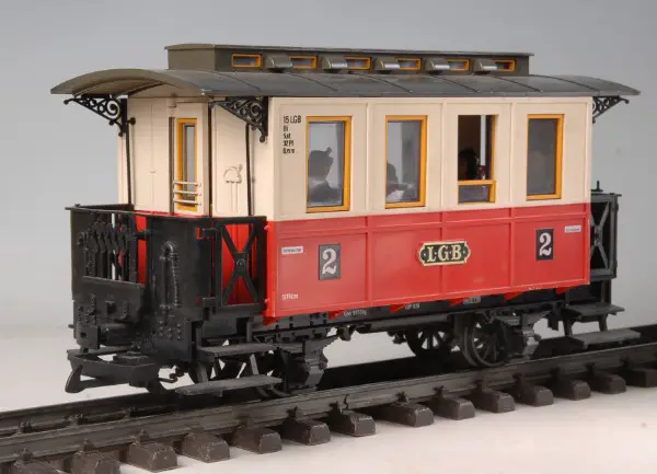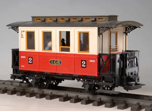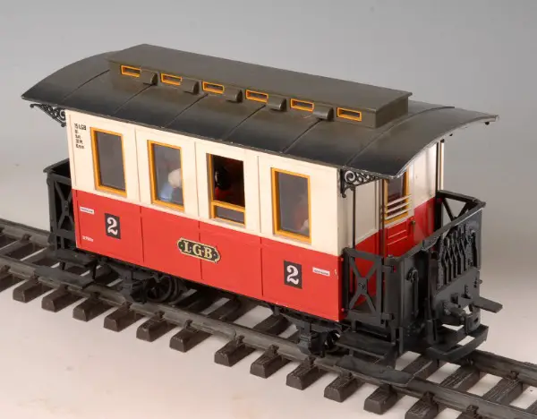 LGB Personenwagen rot 2 Klasse mit Fahrgästen