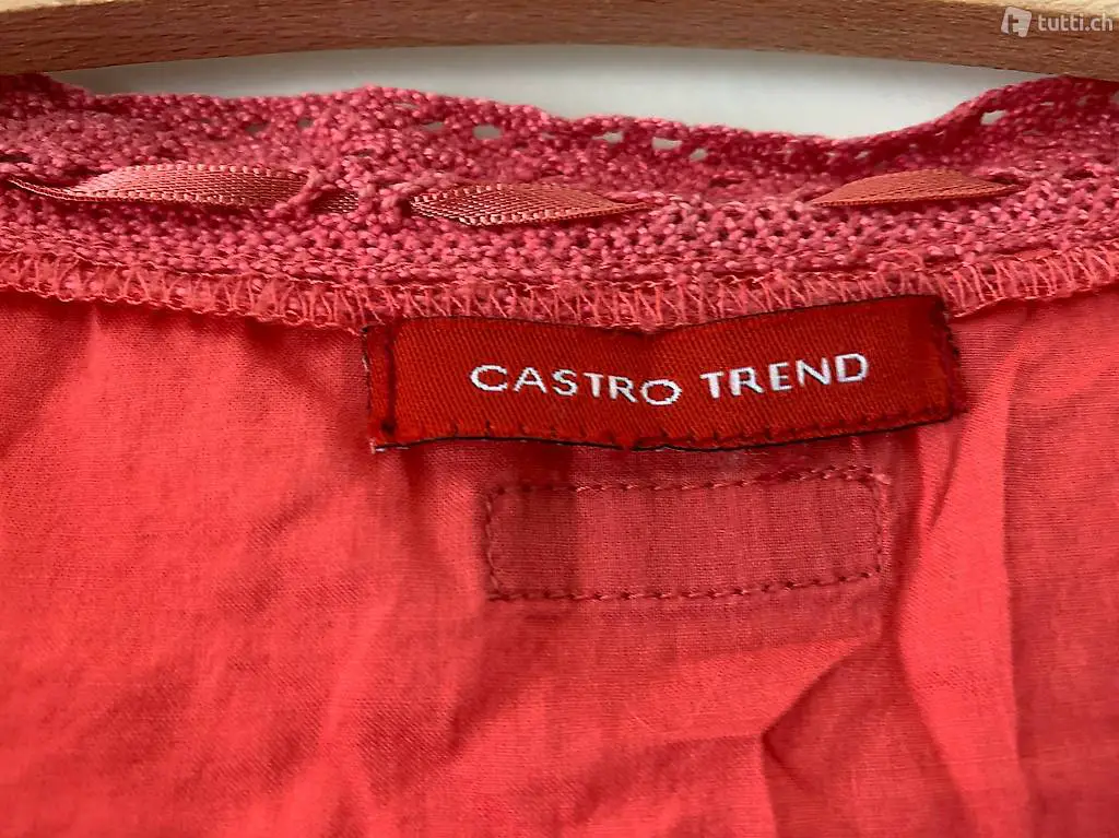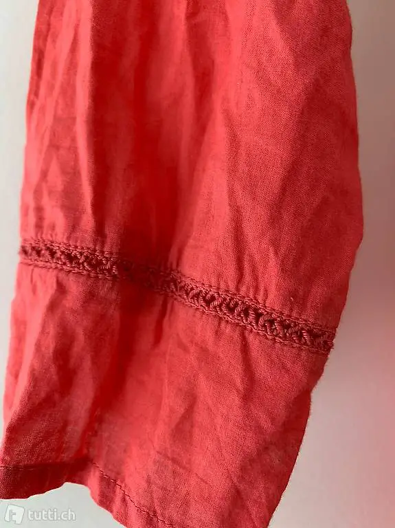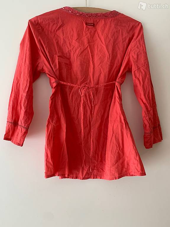 Shirt / Bluse von Castro Trend, Farbe Korall, Grösse S, süsse Details: Stickerei an Ausschnitt und Abschlüssen, Bindeband an Ausschnitt und Taille, kann wahlweise vorne oder hinten gebunden werden