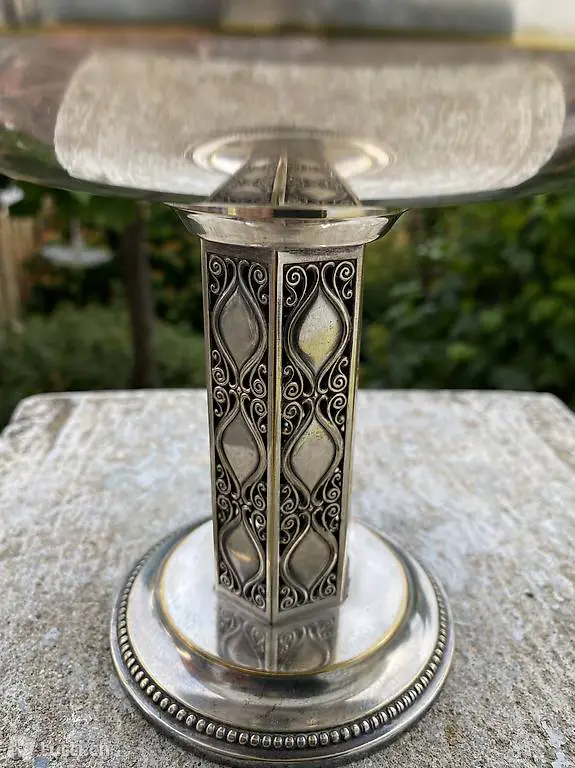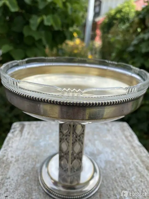 Tafelaufsatz ca. 1920 auf Fuss versilbert mit Originalglas
