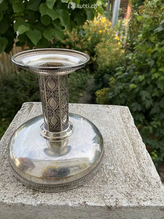 sehr dekorativer Tafelaufsatz von ca. 1920, versilbert und in perfektem Zustand, Höhe 15 cm, Durchmesser 15 cm
