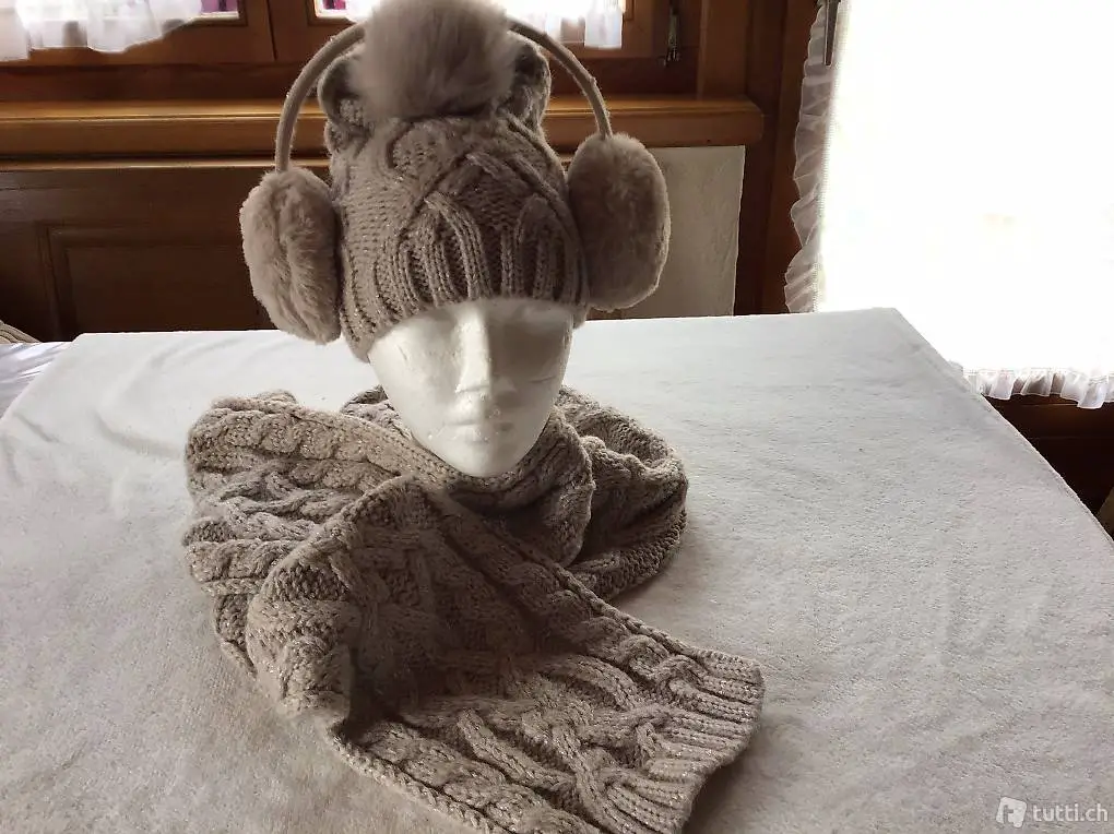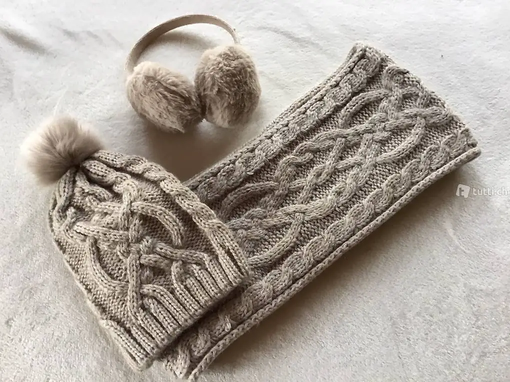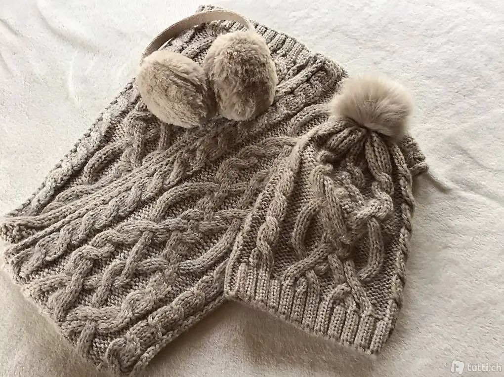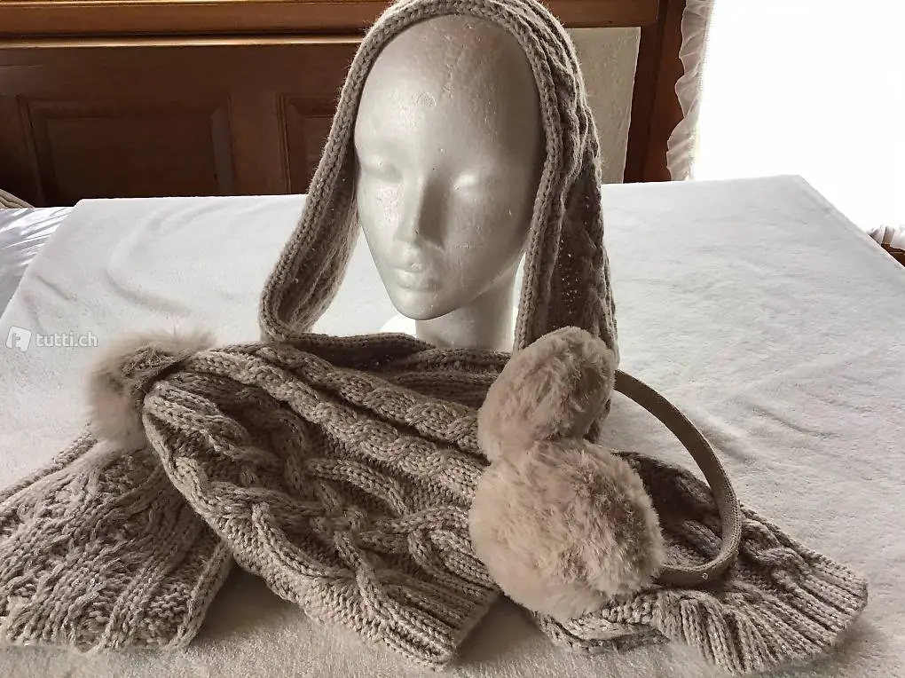 Mütze, Schal, Ohrenschoner, neu