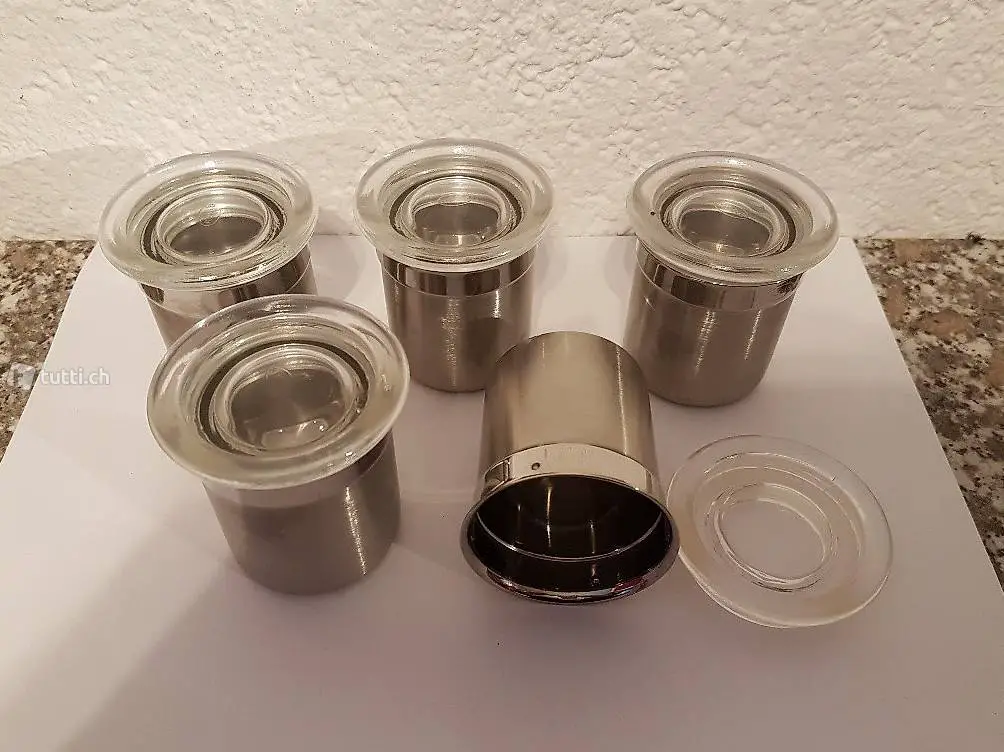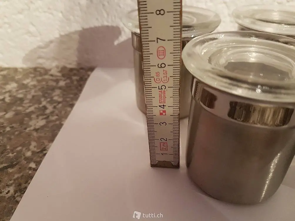 Sehr schöne Gewürz Döseli Chrom mit klarem Kunststoff Deckel
