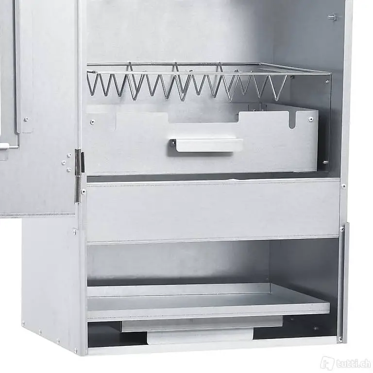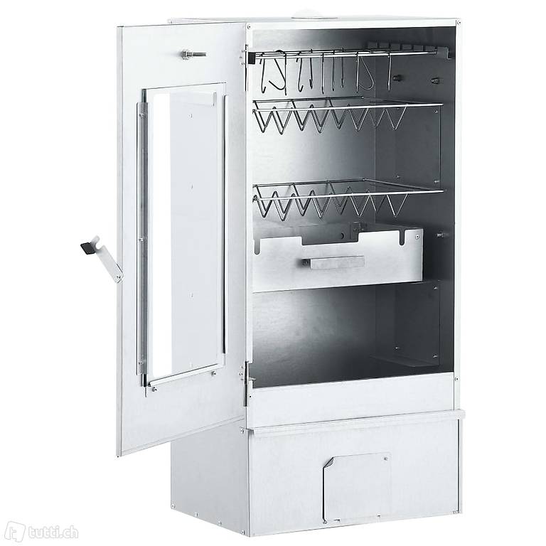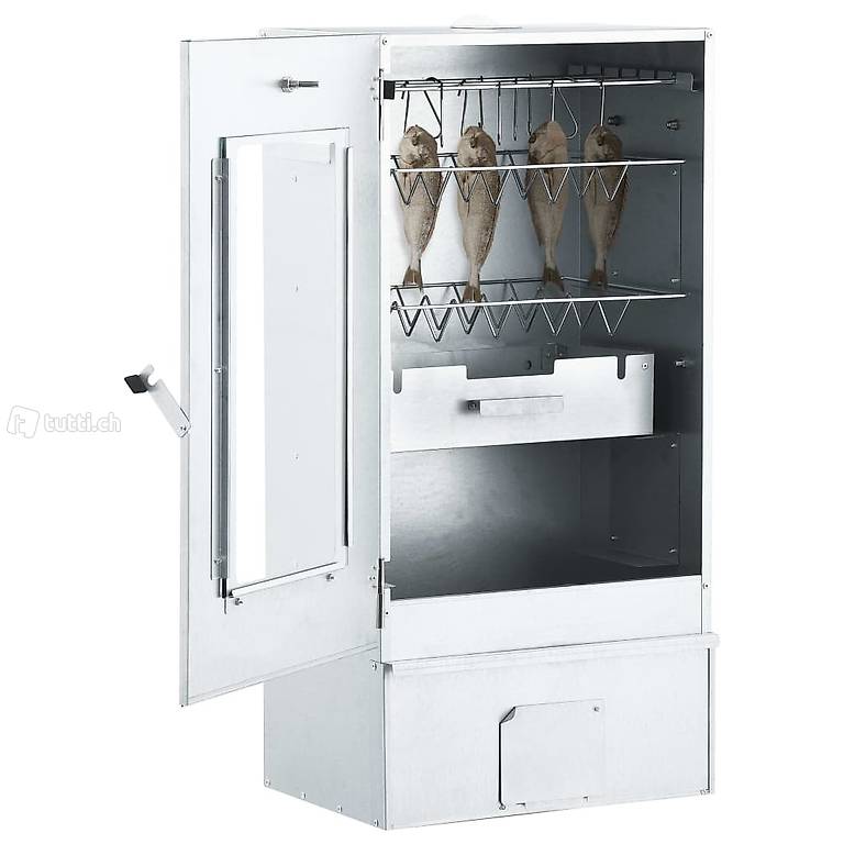 Fisch und Würstchen räuchern. Machen Sie ein Fest und geniessen Sie eine schöne Zeit im Freien mit Ihrer Familie! Dieser Räucherofen ist mit einem Thermometer ausgestattet, so dass Sie aktuelle Ofentemperatur stets im Blick haben. Durch das Fenster können Sie den Räuchervorgang beobachten. Der 83 cm hohe Räucherofen bietet viel Platz zum Räuchern von Fleisch. Der Outdoor-