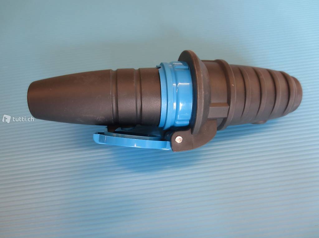 T13 IP-55 Strahlwassergeschützt nach neuer Norm. Gehäusematerial Gummi Kupplung mit Schutzdeckel. MADE in DE. Für Innen und Aussenanwendungen geeignet.
