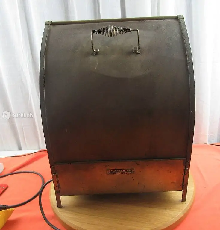 Interessanter Fund aus unseren Lager. Alter Heizofen im funktionierenden Zustand. sicher etwas für Sammler und Technikfreaks. Der Ofen stammt aus England und wurde mit einen schweizerischen Stecker verbaut. Betrieb auf eigene Gefahr und ohne Garantie. Masse ca. 40 x 27 x 52 cm.