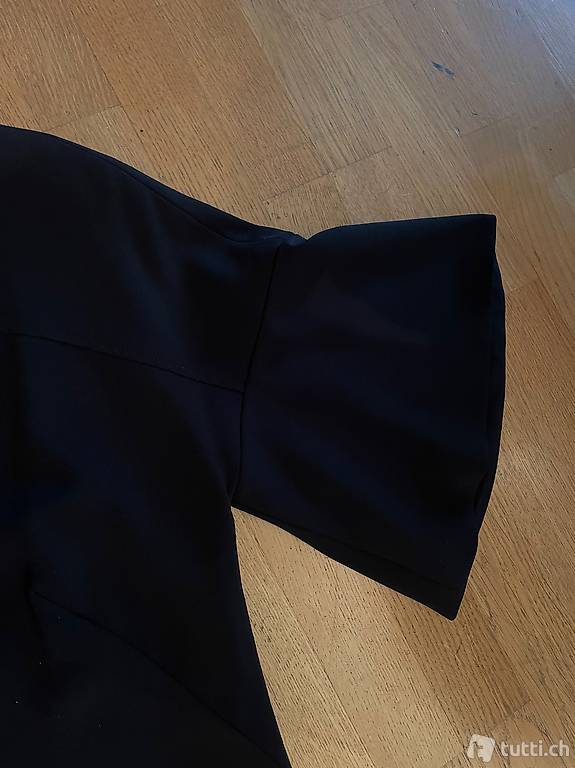 marke: madeleine, farbe: schwarz, mit schönen rüschenärmeln. grösse: m, brustumfang total: 100cm, 96cm ganze länge,