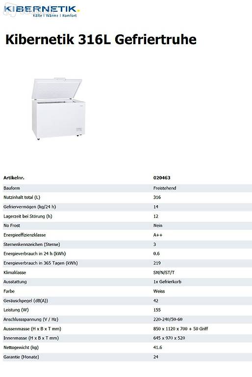 Artikelbeschreibung Kibernetik 316L Gefriertruhe
