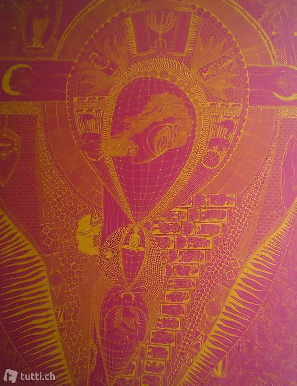 Grosse (71 x 89 cm) signierte Lithographie " Jonah 1 " von 1975 vom Basler Kunstmaler Jörg Shimon Schulthess (1941 - 1992 Basel) .