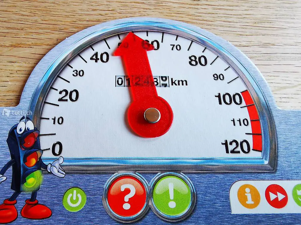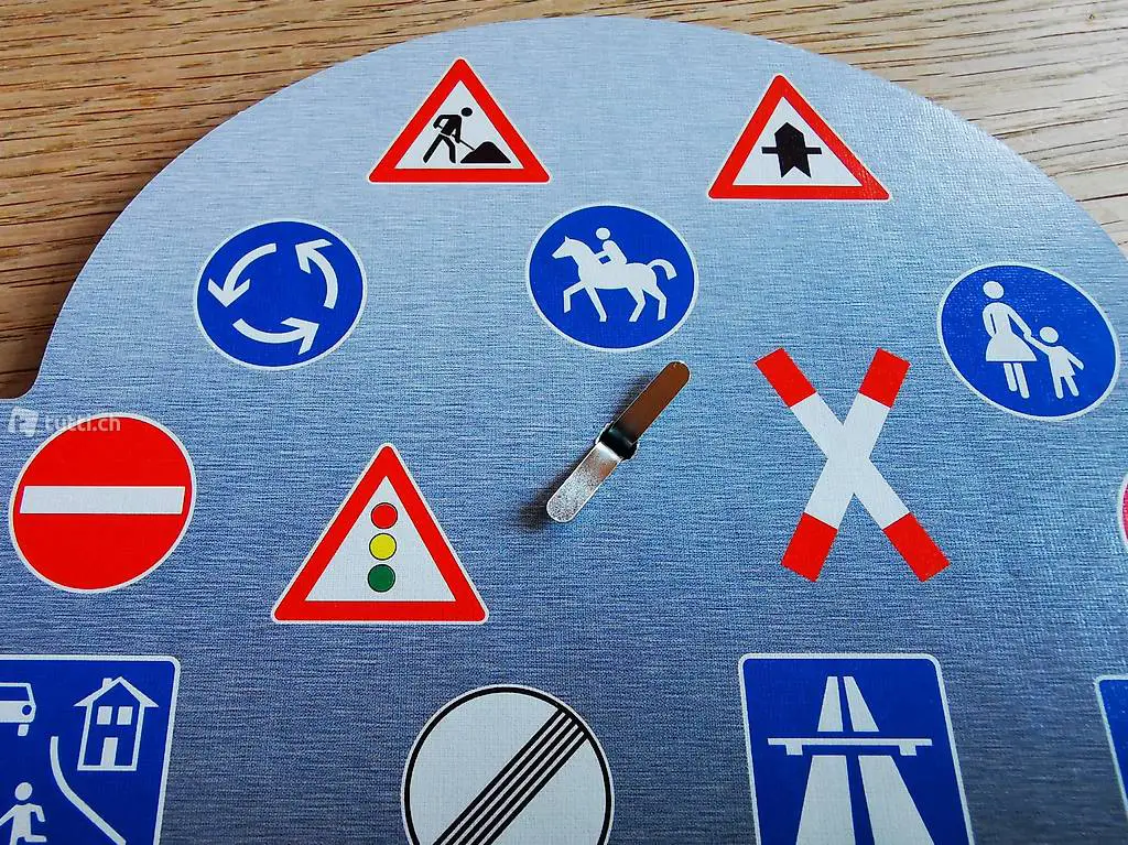 Bei einer Spielscheibe fehlt die originale Befestigung des Zeigers. Wurde mit einer Rundkopfklammer fixiert und kann so auch bewegt werden.