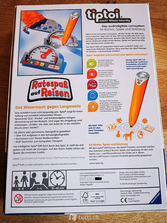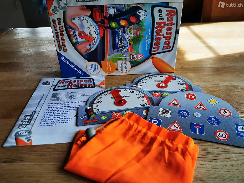 Tiptoi Ratespass für Unterwegs. Gute Beschäftigung für eine lange Autofahrt. Set ist komlett und in gutem Zustand.