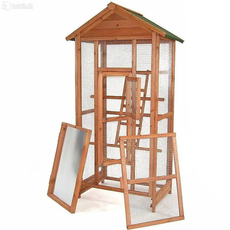 sind, ist ein wettergeschützter Käfigstandort auszuwählen. Die stabile, grosszügige Vogelvoliere lässt sich variabel durch
