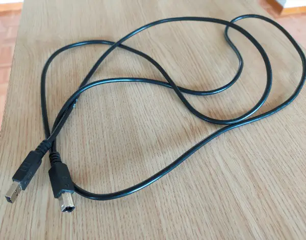 - Ein graues USB-Kabel zum Anschluss von Druckern, Scannern usw. Länge 173 cm.