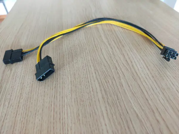 - Ein gelb-schwarzes Stromversorgungskabel für Desktop- und Tower-PCs. Länge 30 cm.