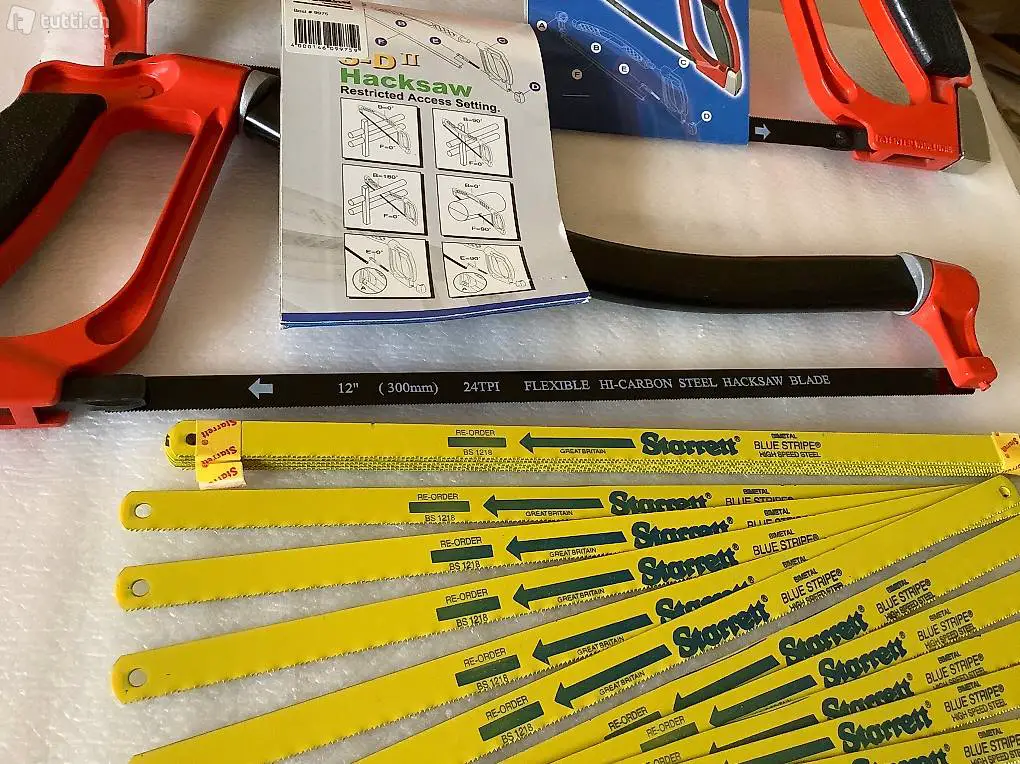 Set besteht aus einem Metallsägebogen mit HI-Carbon Sägeblatt und 20 zusätzlichen Sägeblätter.