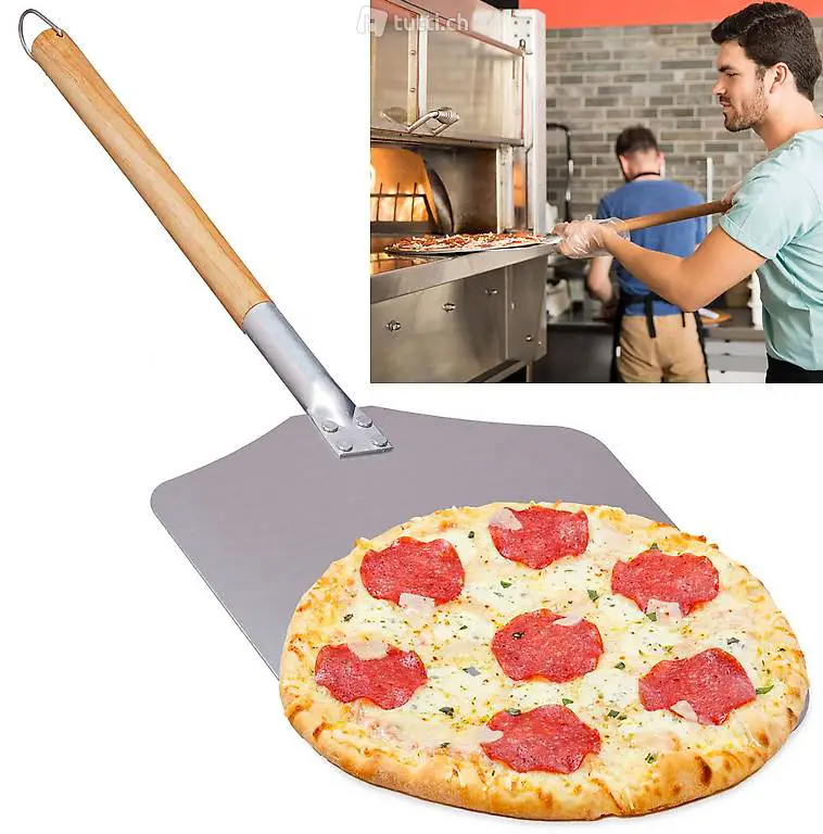 Mit diesem Pizzaschieber können Sie Ihre Pizza ohne Balancieren in den Ofen schieben und wieder entnehmen. Die Metallfäche ist sehr dünn und ermöglich es Ihnen, ohne Probleme unter den Pizzateig zu gelangen.
