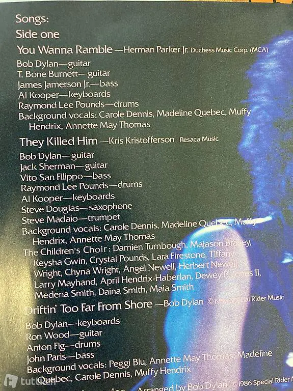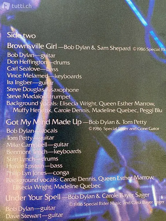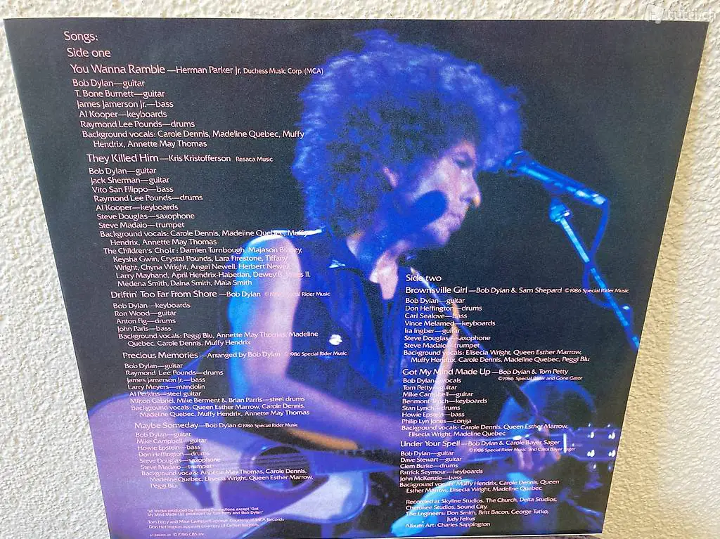 14 Juli 1986; 24tes Album von Bob Dylan mit Knocked Out Loaded. 3 Cover Songs von Kris Kristofferson, Tom Petty, Sam Shepard. Gast Musiker von den Rolling Stones, Eurythmics, Al Kooper.