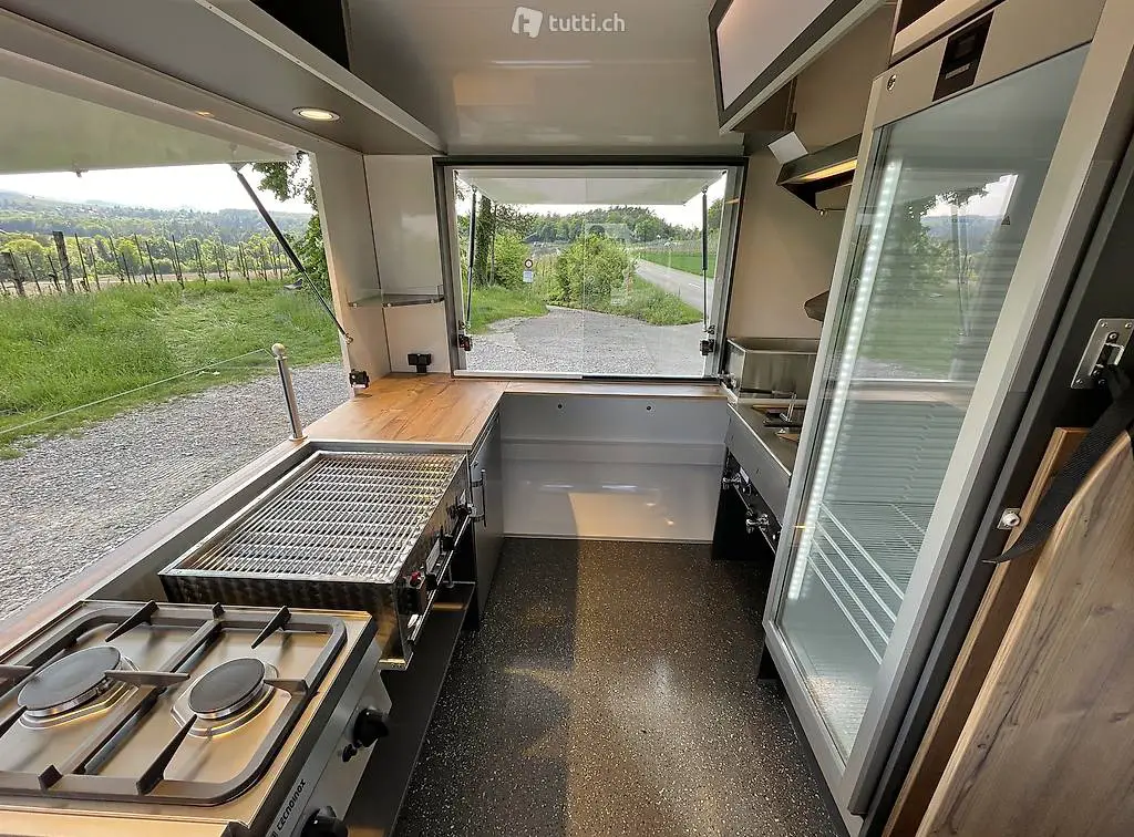Dieses Fahrzeug ist ideal geeignet für den Verkauf typischer Snacks wie Pommes-Frites, Würste, Steaks, Burger, Chicken Nuggets, Fischknusperli etc.!