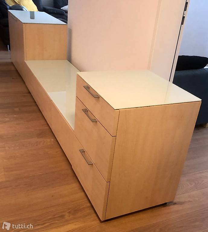 3-teilig. Die Wohnwand ist in einem guten und gepflegten Zustand. Die Wohnwand ist aus dem