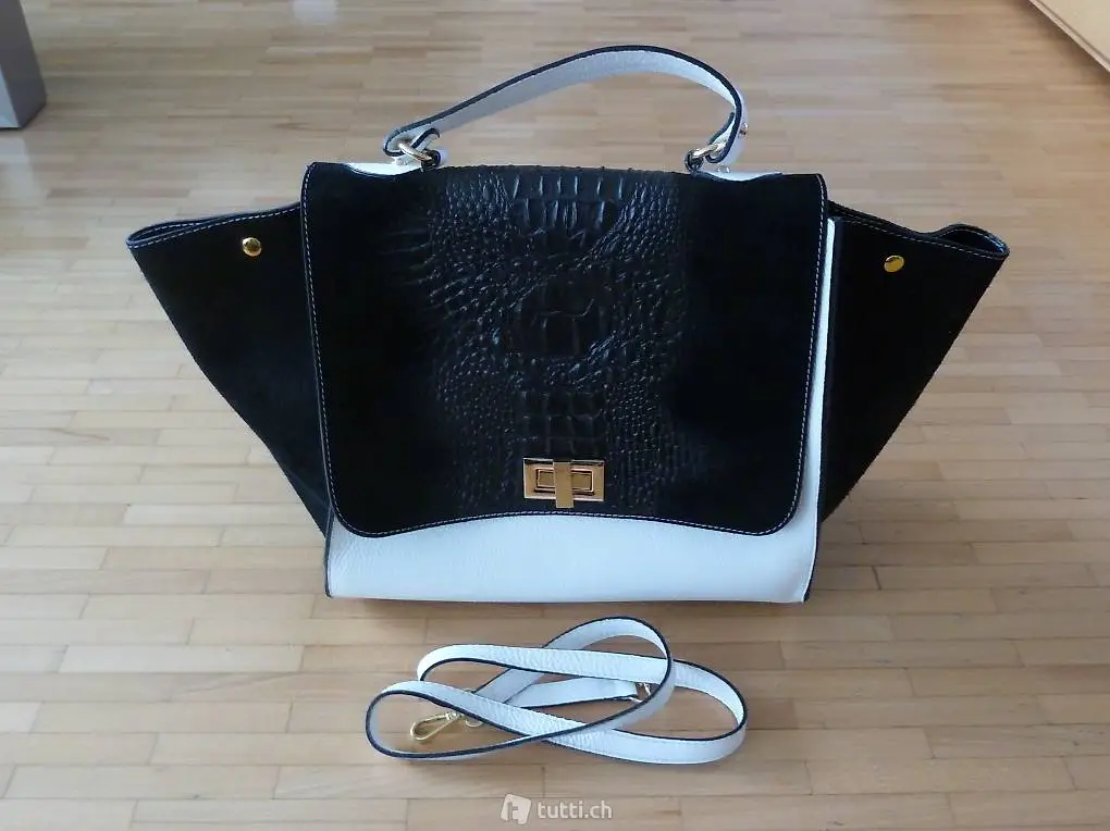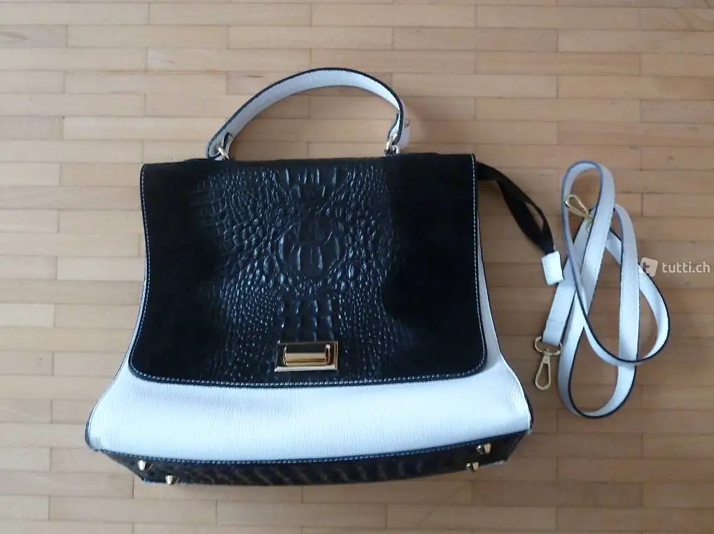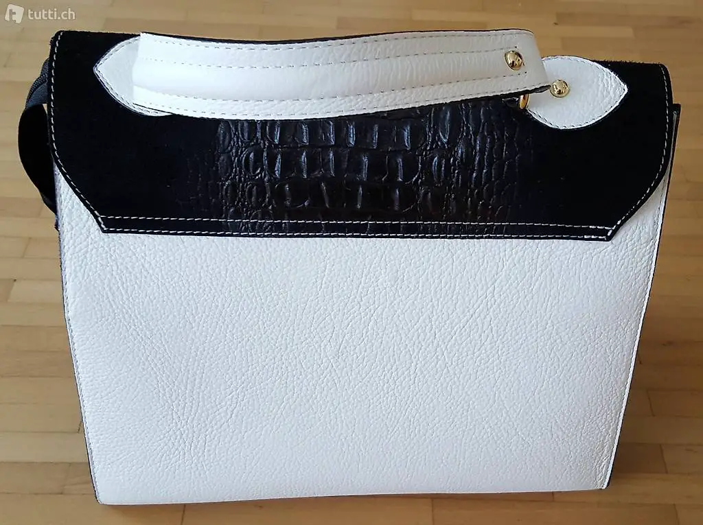 Stielvolle Handtasche schwarz/weiss