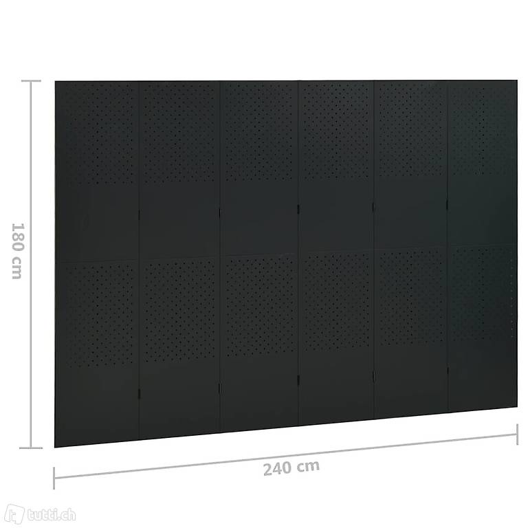 6-tlg. Raumteiler Schwarz 240x180 cm Stahl