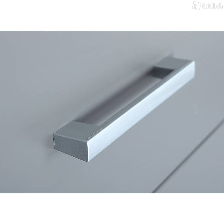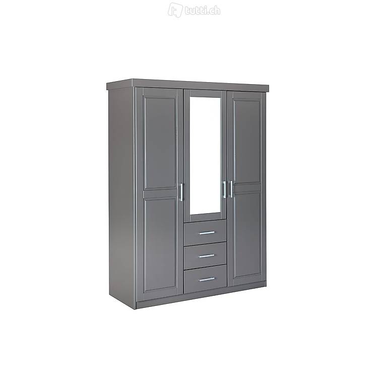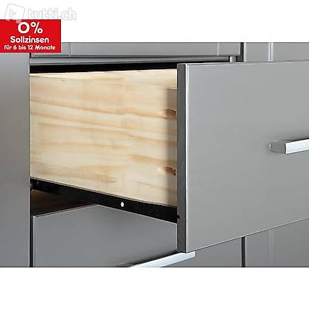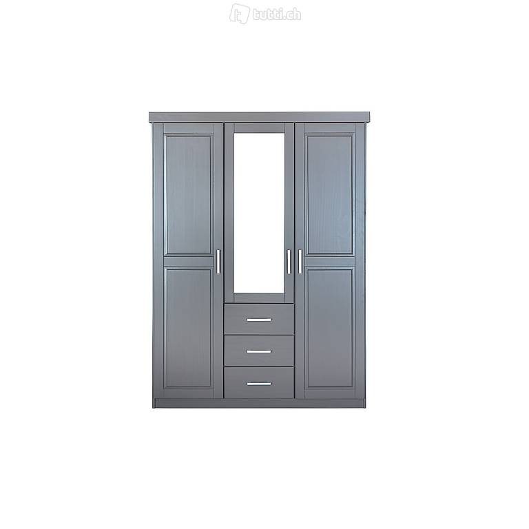 Massivholz, grau lackiert, 3 Kassettentüren, 3 Schubladen, 1
