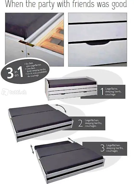 trois couchages en un, tiroir inférieur: possibilité de couchage ou espace