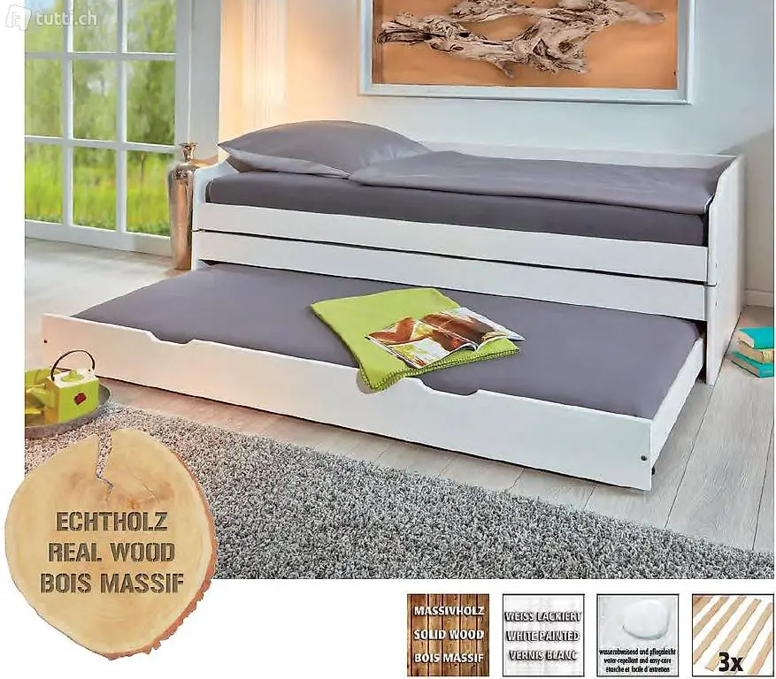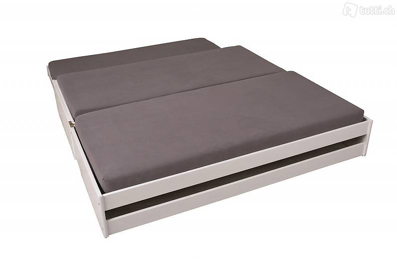 ein Bett, drei Liegeflächen, untere Schublade: Schlafplatz oder Stauraum,