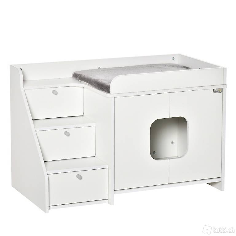 Katzenschrank für katzentoilette Katzenklo mit 3 Stufen der Treppe Katzenhaus Katzenhöhlen Katzenschrank für Katzenbett mit Türöffnung PB-Platte Weiss 90 x 48 x 59 cm