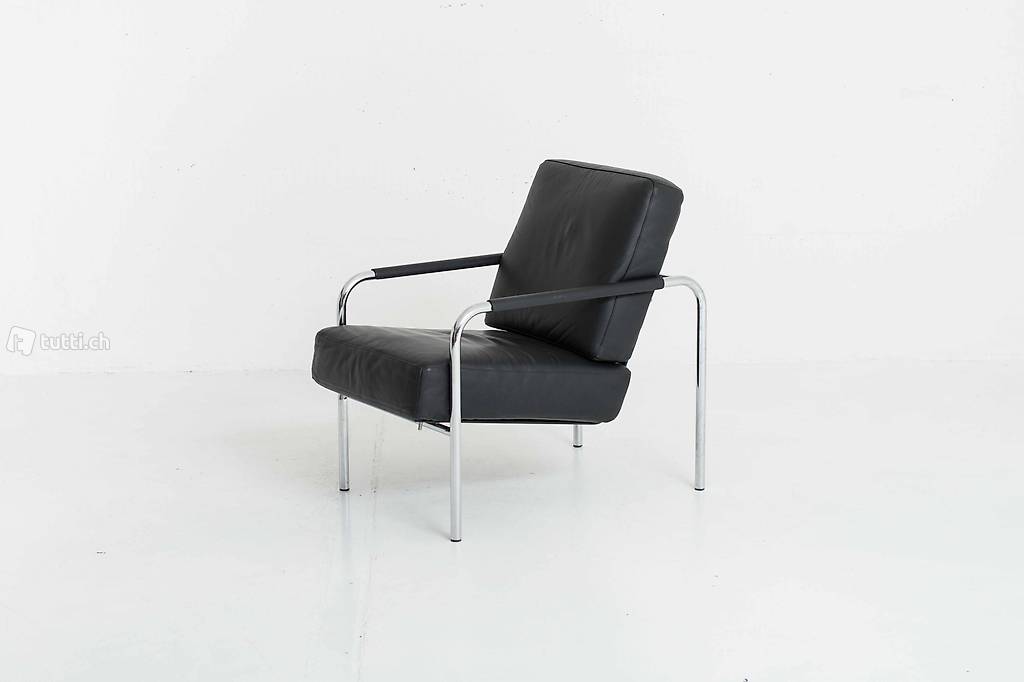 Der in zwei Positionen verstellbare Susanna kann als gemütlicher Sessel gebraucht werden, ebenso als Lounge Chair mit etwas senkrechterer Rückenlehne. Auch wenn das Möbelstück sehr filigran und formreduziert wirkt, wurden keine Abstriche in Bezug auf Komfort gemacht: Stahlfedern garantieren eine möglichst weiche Sitzfläche und Rückenlehne, die lederbezogenen Kissen, Armlehnen polstern die Oberflächen des Sessels. Der Susanna von Zanotta ist ein bequemer Lounge Chair, welcher aufgrund seiner Konstruktion nicht zu schwer wirkt. Er ist mit weichen Kissen bestückt und lässt sich in zwei Positionen stellen.