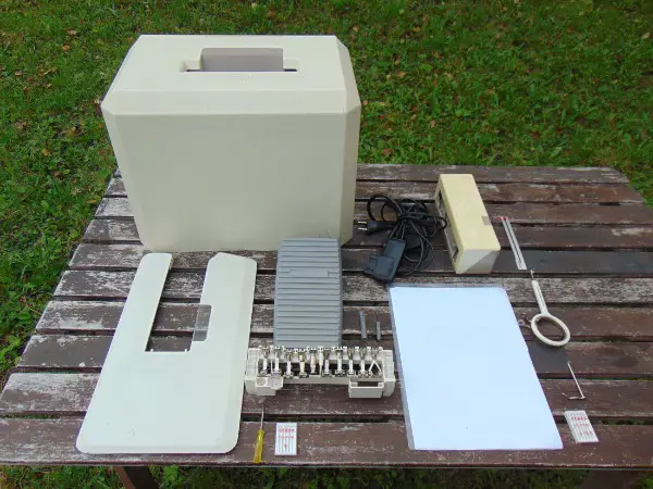 Mit diversem Zubehör: Schutzhaube, Fussanlasser, Netzkabel, Nadeln,